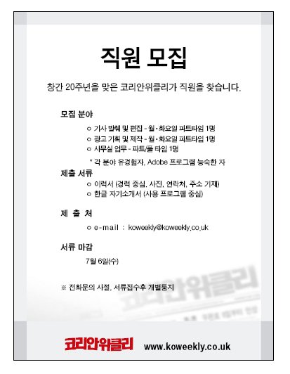 코리안위클리 직원모집