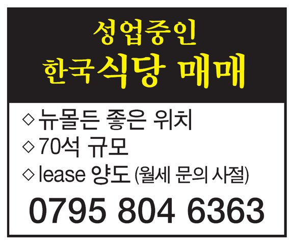 한국 식당 리스 매매 레인즈파크